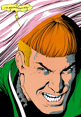 Last issue, we learned Guy’s personality operates on soap-opera-amnesia rules: a second blow to the head undoes the first. He has announced his return to assholery by paraphrasing Poltergeist II and throwing Lobo through a window.